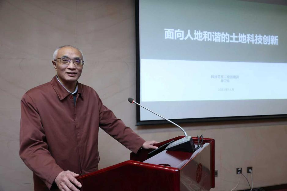 自然资源部科技发展司原二级巡视员、中国土地学会学术委员会副主任委员单卫东研究员作《面向人地和谐的土地科技创新》主题报告,深入剖析了“人地和谐”的科学内涵,强调其核心在于认知“自然地域系统”这一根本。他指出,为实现真正的人地和谐共生,必须回归自然地理单元的本体,运用系统思维与人工智能等新技术,在深刻理解自然系统演变与人地耦合规律的基础上,科学开展国土空间规划、资源利用与生态修复,并以生动的“桌子”比喻,阐明了自然本体、资源利用与生态保护三者的辩证统一关系。