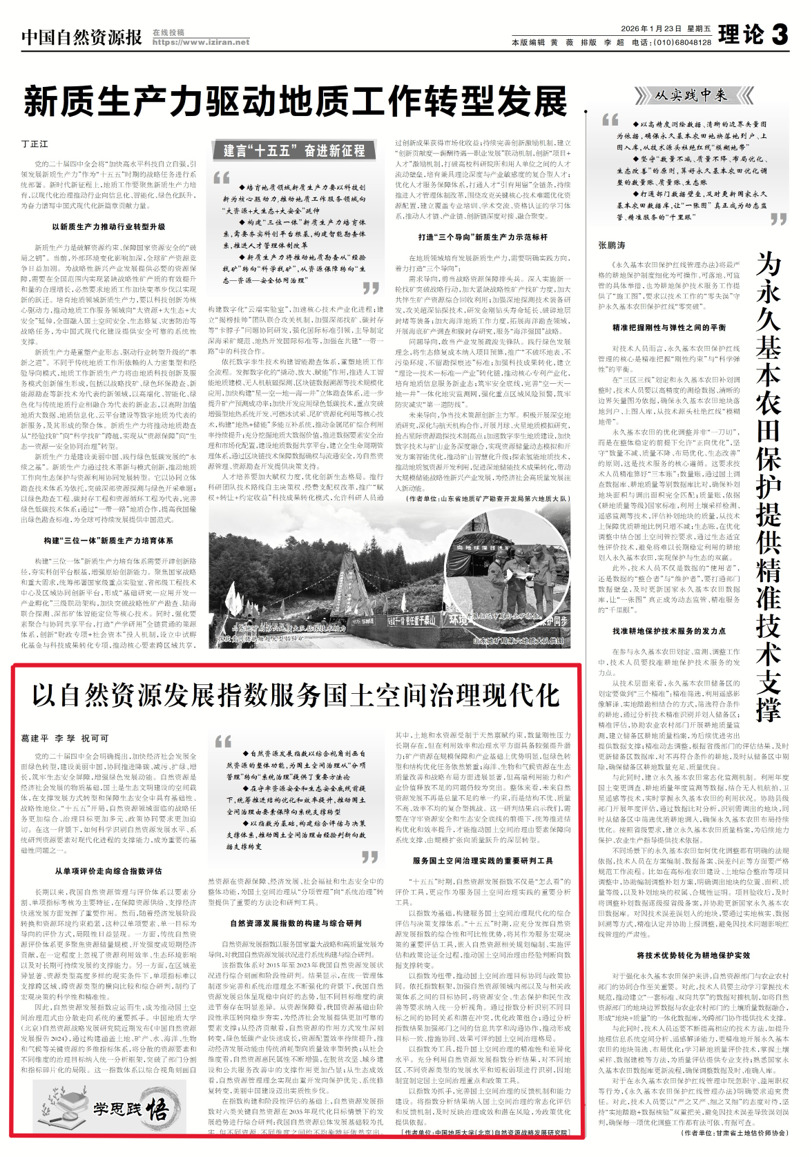 学思践悟:以自然资源发展指数服务国土空间治理现代化